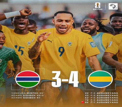 第23分钟,冈比亚门将盖伊长传,扬库巴-明特单刀破门,冈比亚1-1加蓬